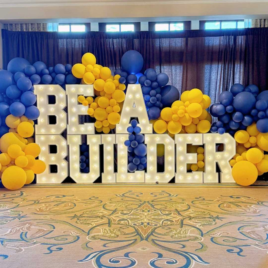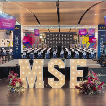 We can design custom floral installations to frame your marquee — from lush floor arrangements to minimal stems that complement your letters without stealing the spotlight.