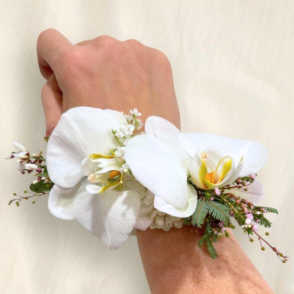 Wear them last — Put on your corsage or boutonniere right before photos, after the outfit, hair, and makeup are done