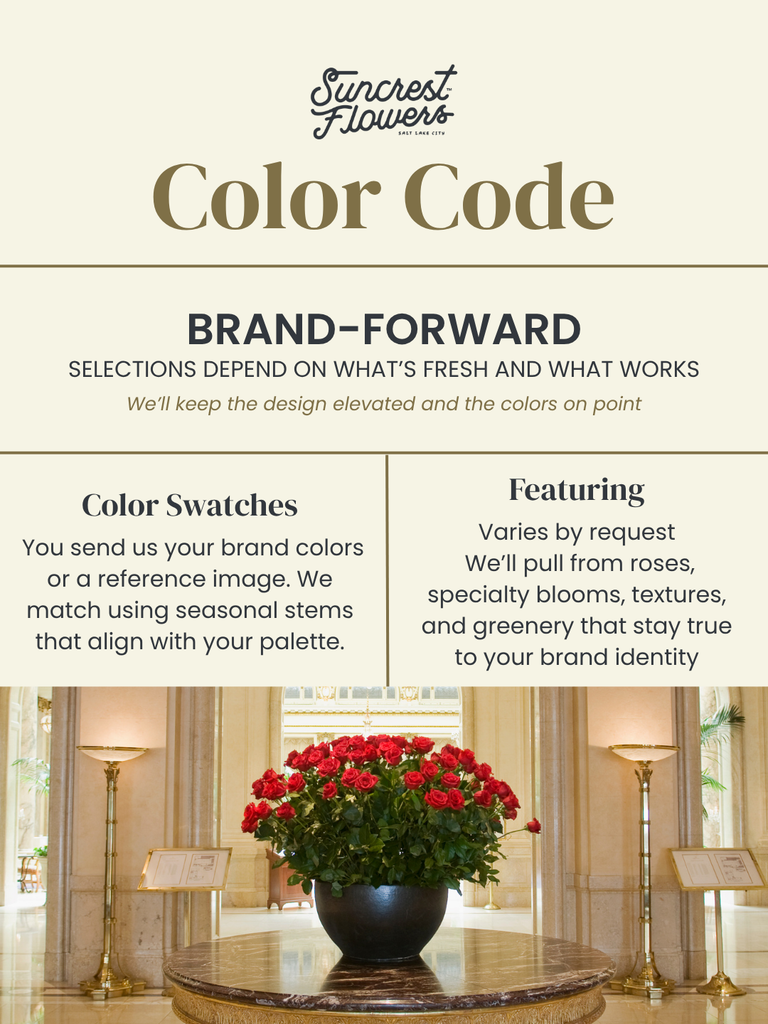 You can request colors or specific stems. If they’re in and up to our standards, we’ll use them. If not, we’ll pick what looks best.